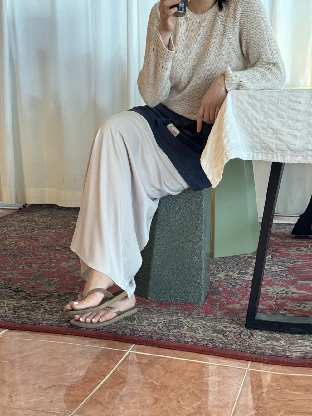 루즈한 상의와 매치: 내추럴하면서 고급스러운 무드