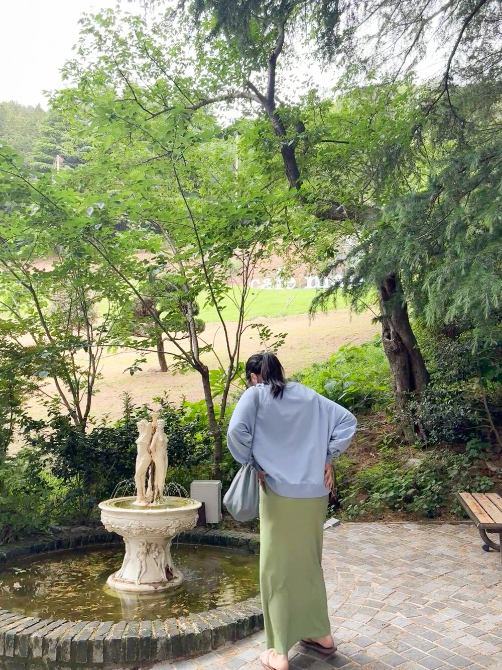 길이감 있는 상의와 매치 : 고급스럽고 내추럴한 무드